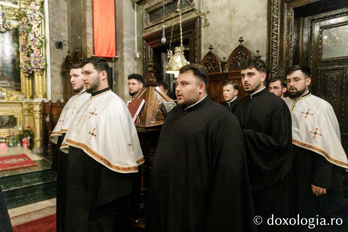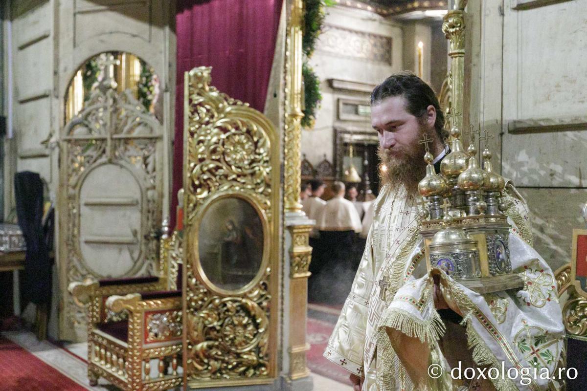 La priveghere a slujit Preasfințitul Părinte Nichifor Botoșăneanul, Episcop-vicar al Arhiepiscopiei Iașilor, înconjurat de un sobor de preoți și diaconi.